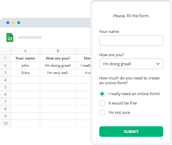 We save time for individuals, education institusions, even small and large teams. You can use our features in every industry. Create form with fields you need. Be creative and work with data more efficiently.